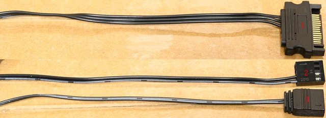 ▼燈光風扇集線板接出供電用SATA接頭(1)、風扇轉速連動控制/轉速回傳4pin PWM接頭