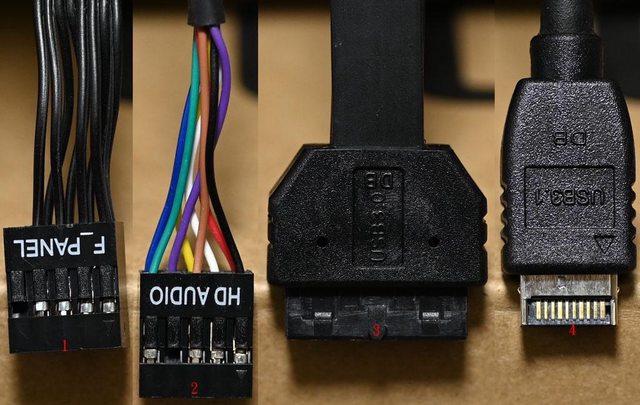 麥克風插座接頭,3為USB3.2 Type-A主機板接頭,4為USB3.2 Type-C主機板接頭