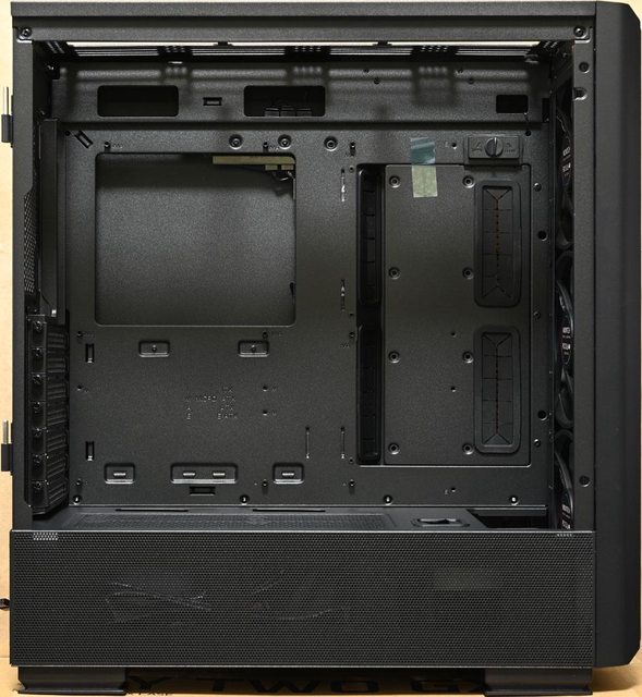 ▼機殼左側配置圖,主機板/介面卡安裝區與電源艙採隔離設計。底板上方/中間/前端/右