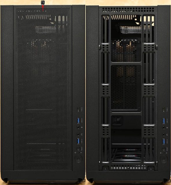 ●前方/右側前方/電源艙隔板/後方/頂部提供最多11個120mm風扇安裝空間,前方預裝3個