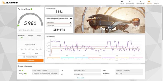 3DMark Portyal Score 理論跑分 5961