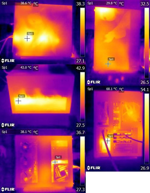 ▼風扇裝在右側前方的CPU+GPU高負載30分鐘後紅外線熱影像圖