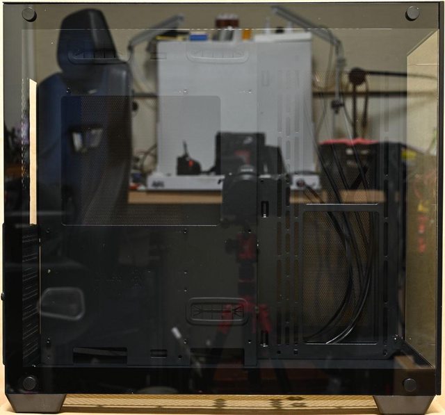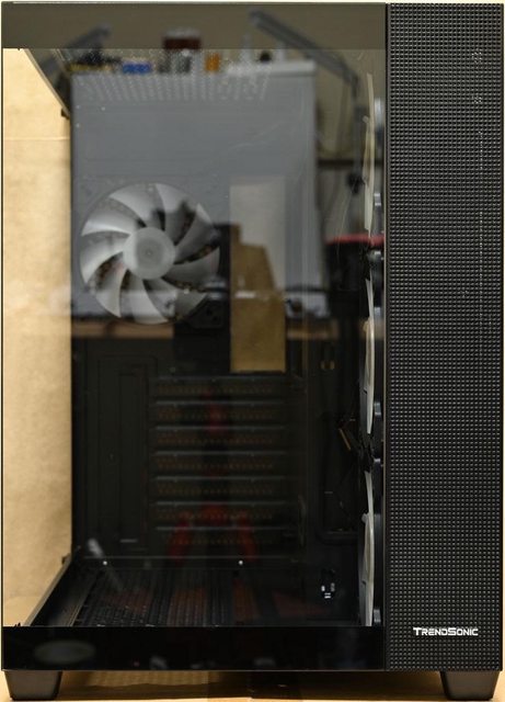 ○雙艙設計,正面與左艙強化玻璃之間採無支架設計讓視野無斷層。左艙支援ATX主機板