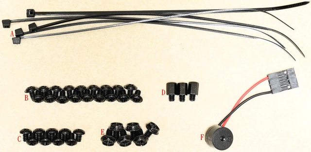 (D)、電源/顯示卡螺絲(E)、蜂鳴器(F)