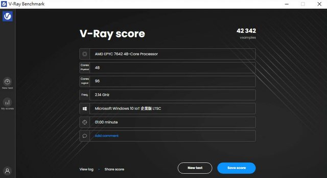 v-ray EPYC 7642 42342 vsamples比14900K 的22331 vsamples快了近90%