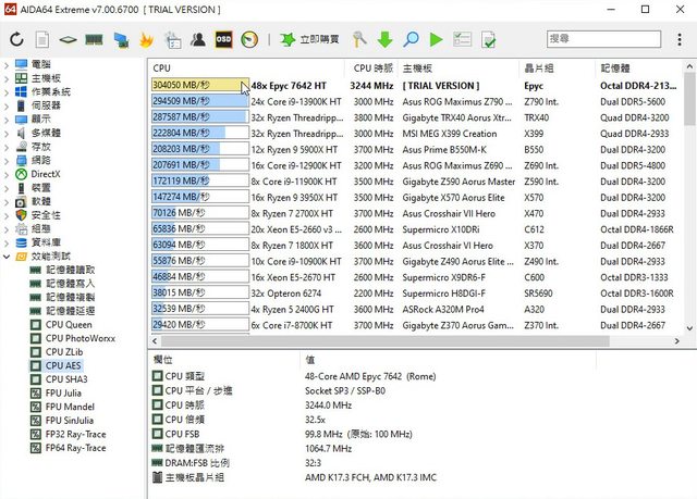 至於AIDA64的CPU分數普普通通