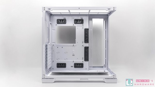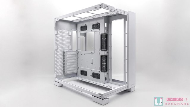 他採用雙艙式無立柱設計,最大支援到 E-ATX 規格主機板,最多可安裝 10 顆風扇,更能