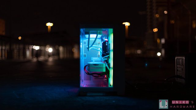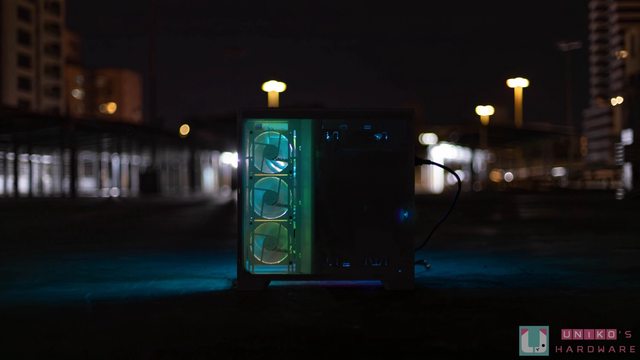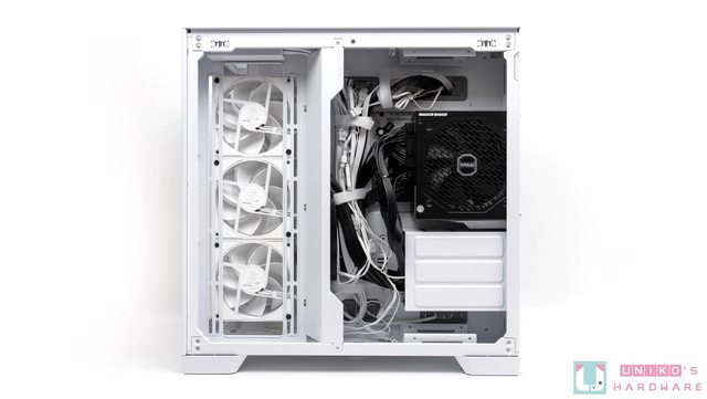 孔設計,所以左側搭配的 ARGB 風扇,即使是從背面也能看到燈效透出,如果是跟小編一樣