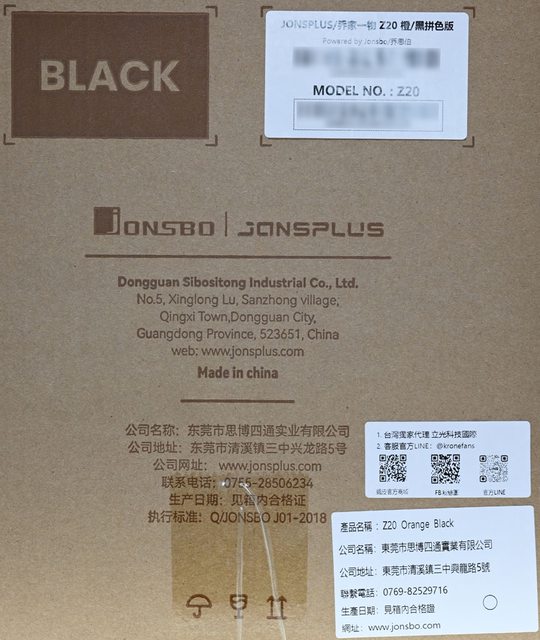 ▼此面外箱有JONSPLUS商標、Z20字樣及部分正面外觀