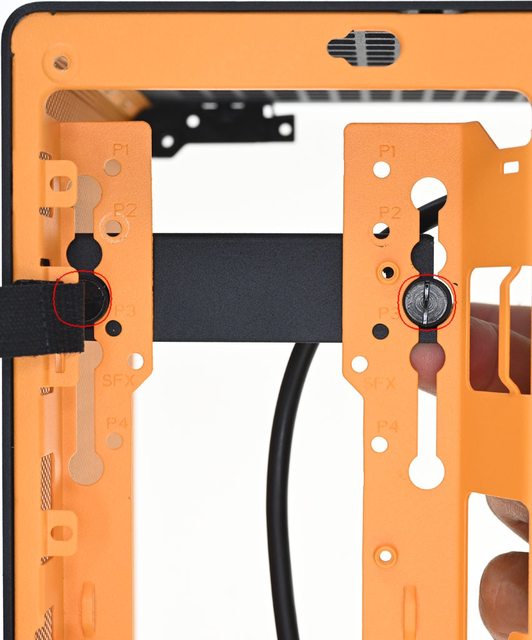 ▼頂部風扇/水冷排抽取式支架安裝240mm一體式水冷散熱排,將抽取式支架推回機殼前要