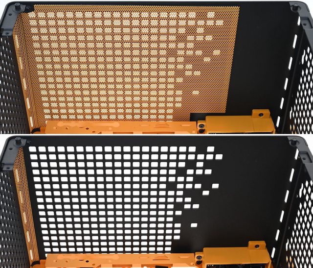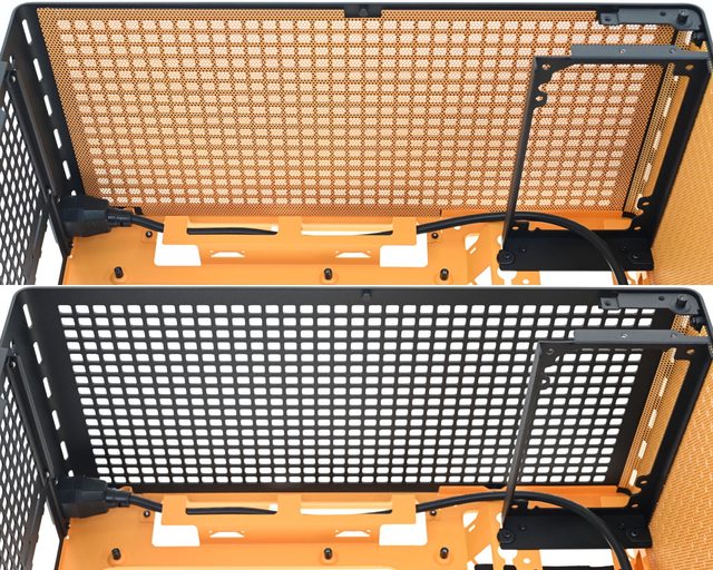 標準擴充槽配置橘色網狀通風擋板,擴充槽頂部橘色通風護蓋使用手轉螺絲固定