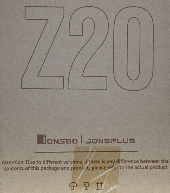 ▼此面外箱有Z20字樣、JONSBO/JONSPLUS商標、注意事項、運輸標誌(避免潮濕/小心輕放