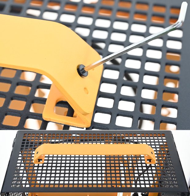 ▼將提把放上2個掛勾,使用內六角扳手鎖上2個內六角皿頭螺絲,提把便安裝完成