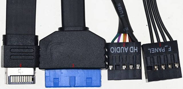▼機殼連接線組,1為電源開關/電源指示燈一體式接頭,2為4極耳機麥克風插座接頭,3