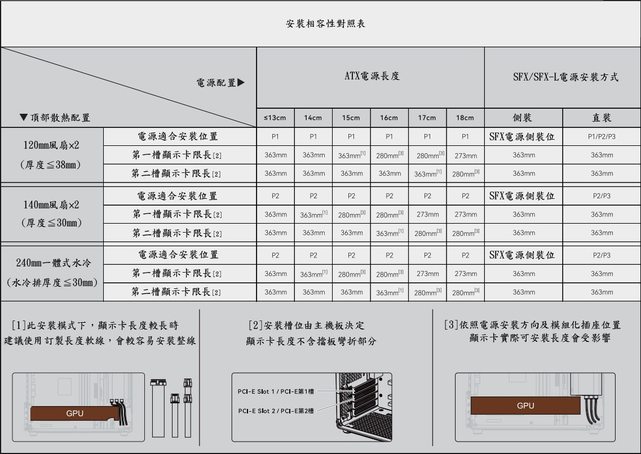 裝14公分ATX電源,顯示卡最大長度363mm(電源及顯示卡實際可安裝長度依硬體配置決定)