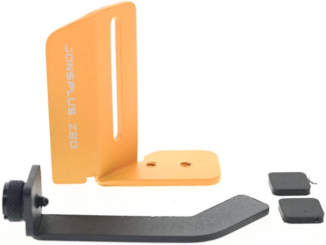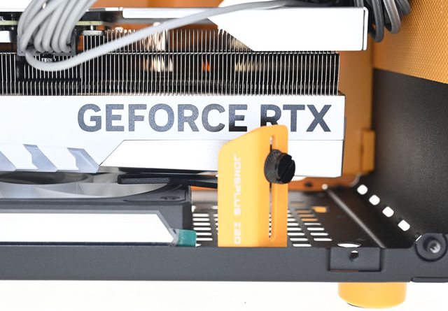 ▼可調整式顯示卡支撐架組合套件包含印上JONSPLUS Z20字樣的橘色立架、具備手轉螺絲