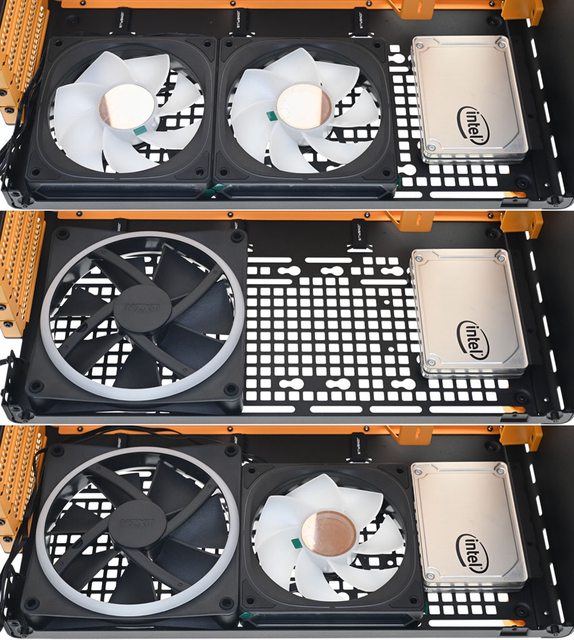 ▼2.5吋裝置安裝在底部時,這時底部可以安裝2個120mm或1個140mm或1個140mm加1個
