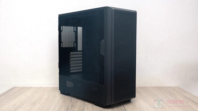 右面側板上有小範圍網孔,對應是側邊的 120 mm*2 風扇位置,讓側邊風扇能妥善發揮效果