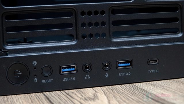 I/O 也全部設計在頂部,共有 USB Type-C*1、USB 3.0 Type-A*2、3.5 mm Mic*1、3.5 mm