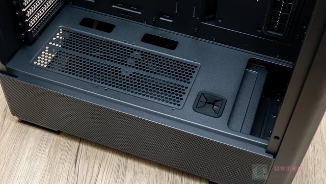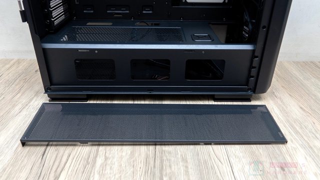 底部的電源供應器艙位下方是網孔設計,並附有防塵網,免工具即可拆除。另外一部分是硬