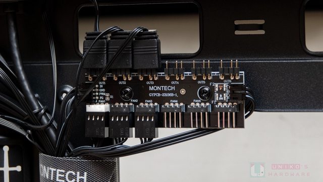 打開側板後內部配置相當清楚明瞭,可看到內建 PWM & ARGB 集線器、側邊風扇框架、線材