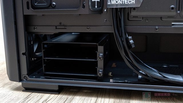 到下方硬碟支架有兩段位置可調整,這就看使用者的需求,若沒有使用 3.5 吋硬碟亦可卸