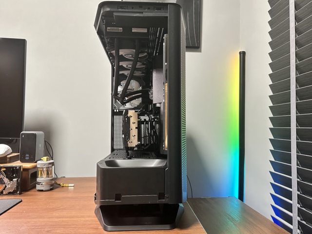 另外本次採用顯示卡直立方式裝機,華擎 intel ARC A770 Phantom的風扇燈效也很適合