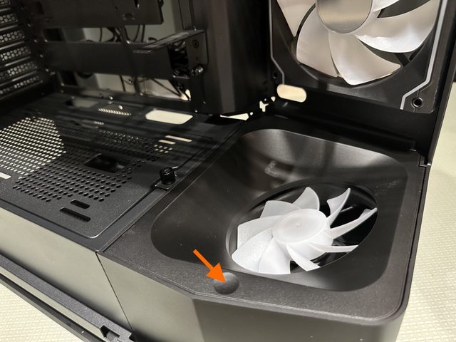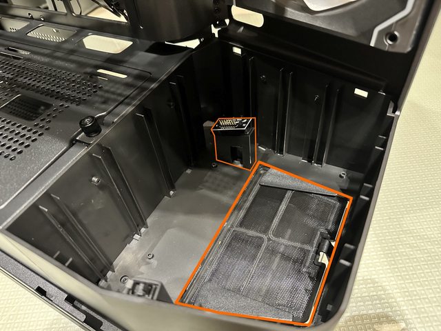 前方底部抬升的斜角進氣風扇為官方宣傳特色之一,除了可安裝風扇外亦可替換成展示平