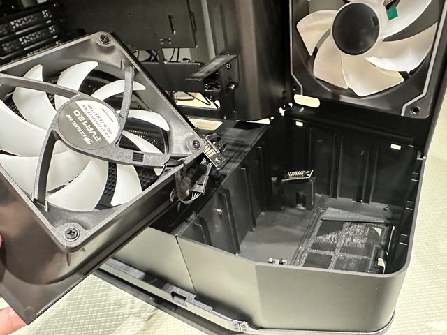 風扇/水冷支架最高能安裝3顆12cm風扇或360mm水冷,電源艙頂部則能安裝2顆12cm風扇或