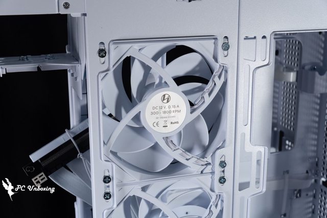 12 cm 風扇安裝於 PCIE 檔板後方,LIAN LI 在 SUP01 這個機殼上是安排於進風用,協助