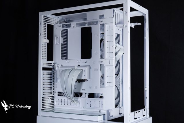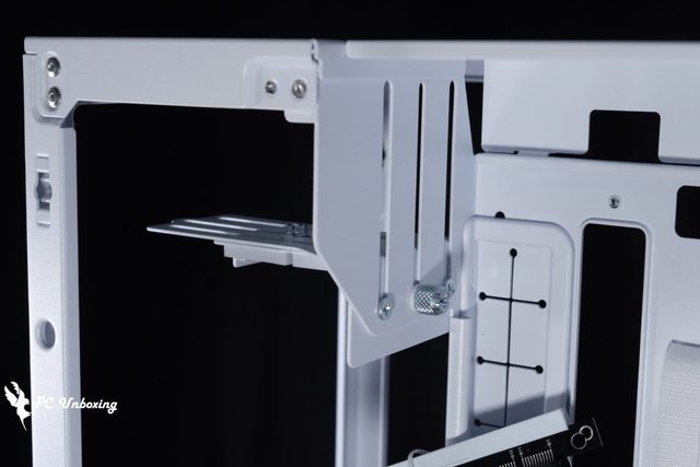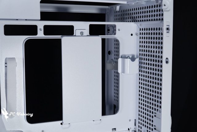從機殼後方視角就可以看出這款機殼架構相當特別,將整個主機板安裝位置往玻璃側透推進