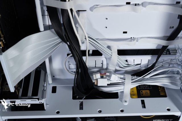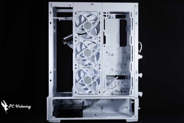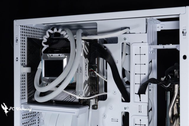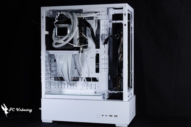 ,讓背面整線空間加大許多,呈現出 50 / 50 平分機殼整體寬度空間,使水冷能夠安裝在