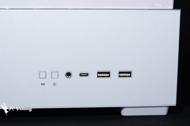 機殼 I/O Port 設置於機殼側面底下,提供了 USB 10Gbps Type-C、2x USB 3.0、複合式音