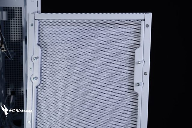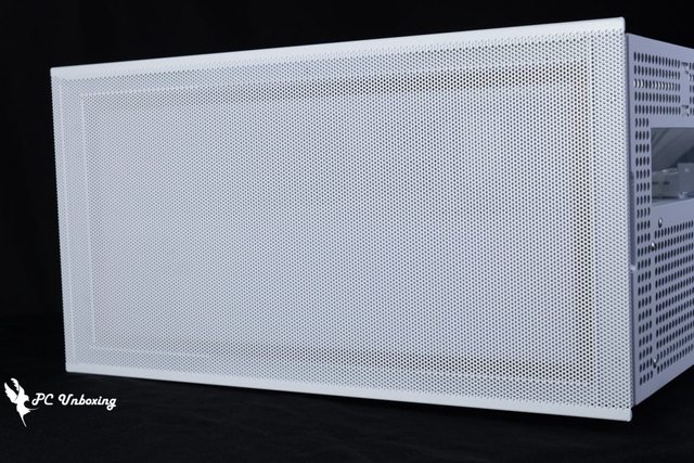 機殼前面板為全面積網孔設置,專門給前置顯示卡帶來最好的散熱空間,這同時也是 SUP01