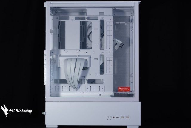 搭載全透度的 4 mm 鋼化玻璃可以清楚看到內部細節,單純這樣子看會覺得這個機殼跟常見