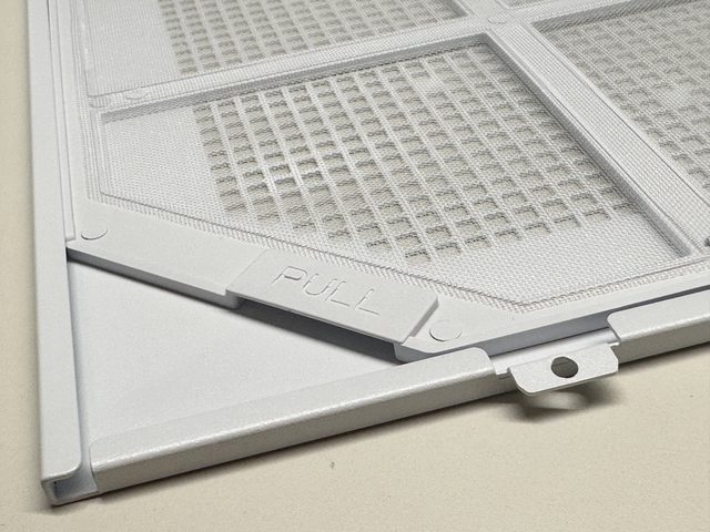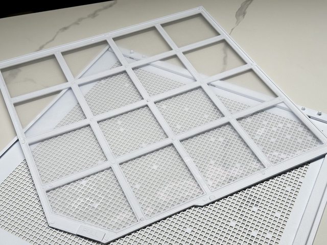 右側板為大面積網狀開孔設計,並封住幾個開孔製造出雪花紛飛的效果(?)