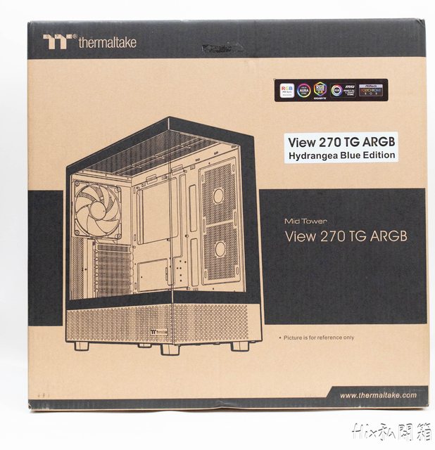 選用Thermaltake View 270 TG ARGB繡球花藍