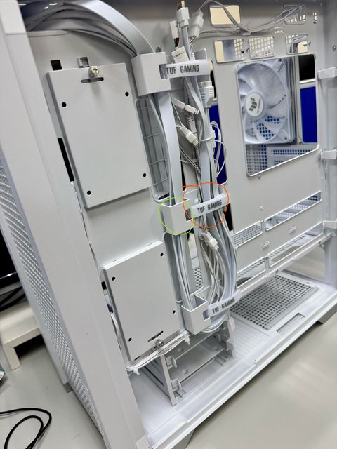 另外的線比較細一點的線 像是ARGB線 可以用束線帶夾起來綁住 如橘色區域束線帶