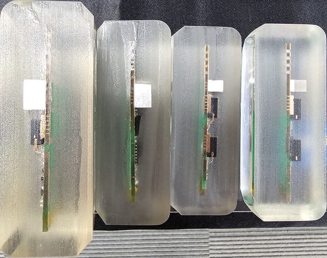 的環氧樹脂也會影響內部熱量往外傳遞。功率元件使用螺絲固定在散熱片上,組裝時螺絲