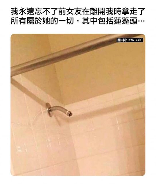 → sujung: 看不懂女友拿走蓮蓬頭什麼意思 180.218.12.66 07/29 02:34