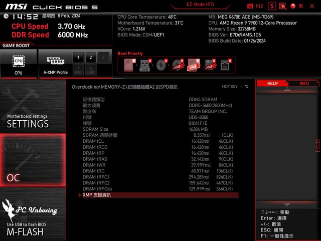 T-FORCE XTREEM DDR5 8000 MT/s 2x 16GB 記憶體,主機板 BIOS 更新至