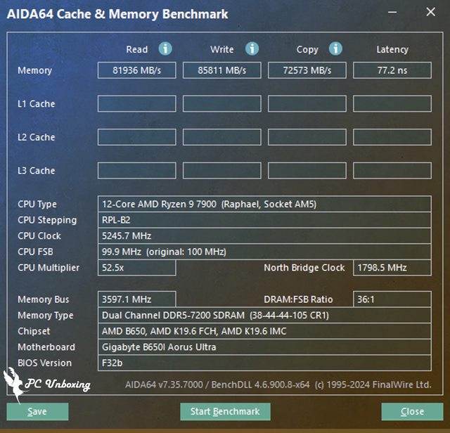 接著使用 AIDA64 Cache & Memory Benchmark 測試 Kingston FURY Renegade DDR5 RGB