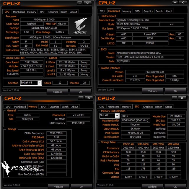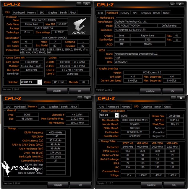 首先由 CPU-Z 來檢視測試平台規格已經相關資訊,SPD 頁面可以看到 Kingston FURY