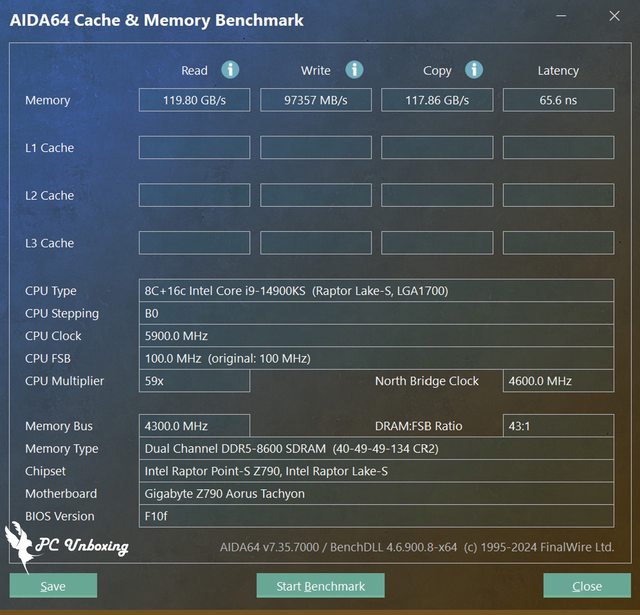 使用 AIDA64 Cache & Memory Benchmark 測試 Kingston FURY Renegade DDR5 RGB