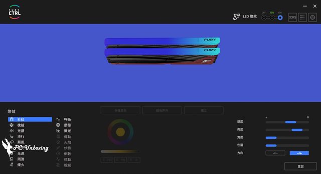 ,可以透過 Kingston FURY CTRL 軟體來設定 18+1 種預設效果,但如果是兩條搭配主板