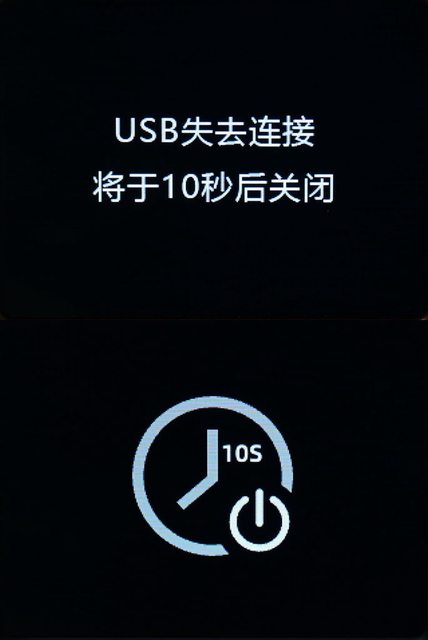 ▼關閉TRCC後,水冷頭螢幕會顯示USB失去連線,將在10秒後關閉螢幕