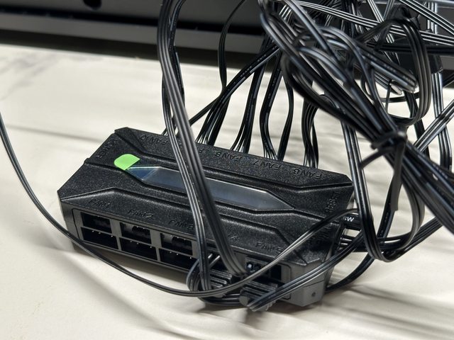 拆除硬碟架...以為來到盤絲洞了。內附7顆風扇各提供兩條單一3Pin供電及ARGB線,無分