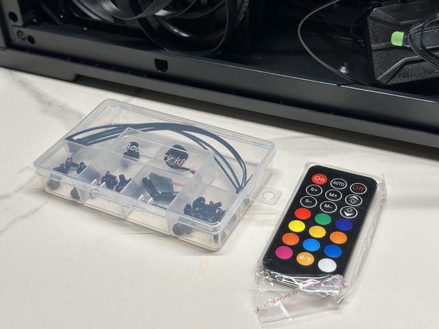 配件有收納盒裝的螺絲若干及無線燈效遙控器!?機殼附HUB的無線控制器是比較少見,