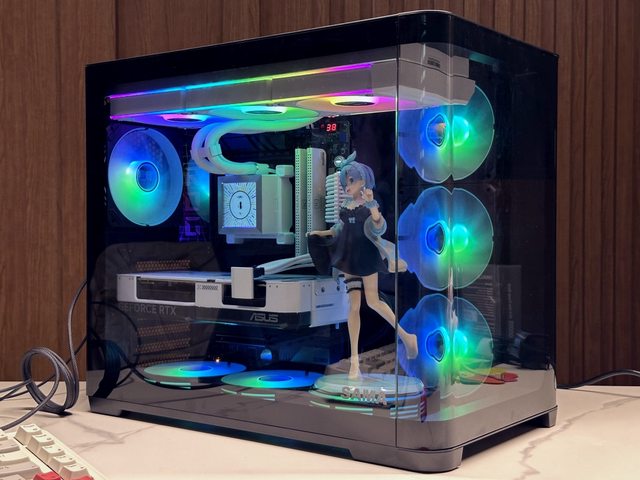 久違地(?)再把老婆擺上去,HydroShift LCD 360R沒有水冷管的阻礙,模型真的能隨便