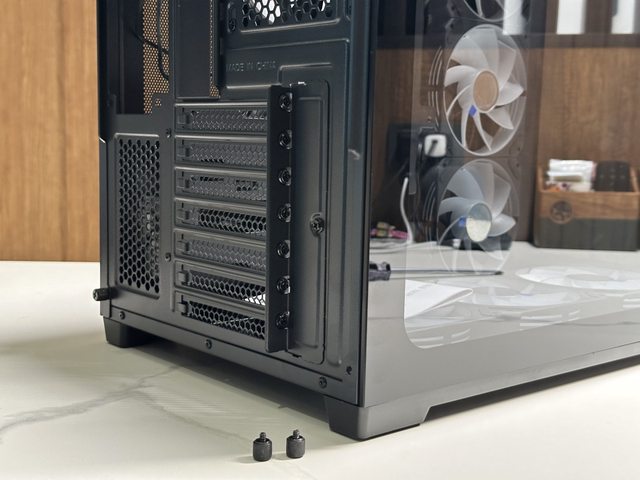 但各PCI槽之間有「橫樑」結構,無法直接安裝各家顯示卡直立架,有些可惜。